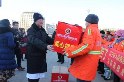 今年入冬以来,视社会公益为己任的沈阳肤康医院,又把投向寒风中辛勤劳作的环卫工人。